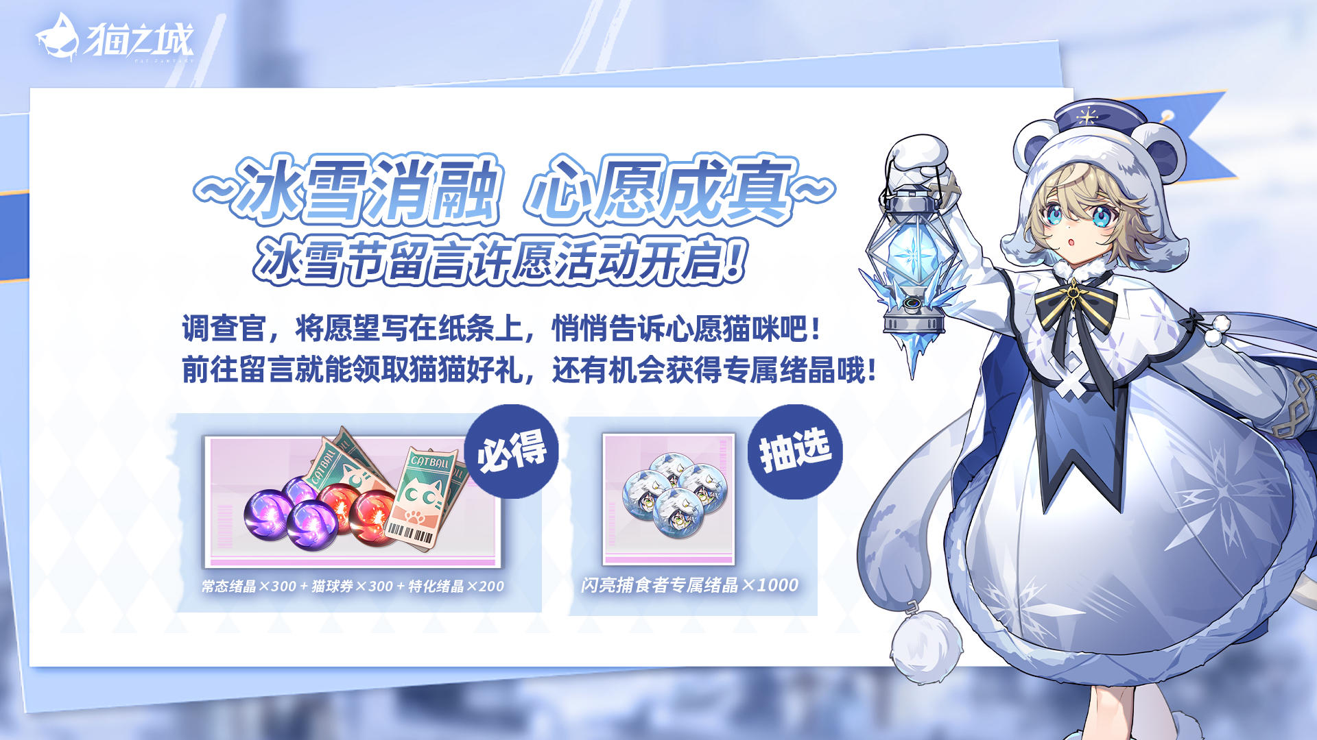 每当冰雪节临近,心愿猫咪的传说故事便会被重新反复提起。据说心愿猫咪的脾气相当古怪,她会惩罚坏人和坏猫,也会倾听大家的愿望:好孩子会获得礼物,坏孩子则受到惩罚。调查官,让我们将愿望写在纸条上,悄悄告诉心愿猫咪吧!冰雪终将消融,愿望终会成真~📆 活动时间:即日起 ~ 12月28日 23:59📝 活动参与方式:在评论区留下愿望,并附上UID和所在服务器,即视为成功参与活动!猫猫推荐通过填写许