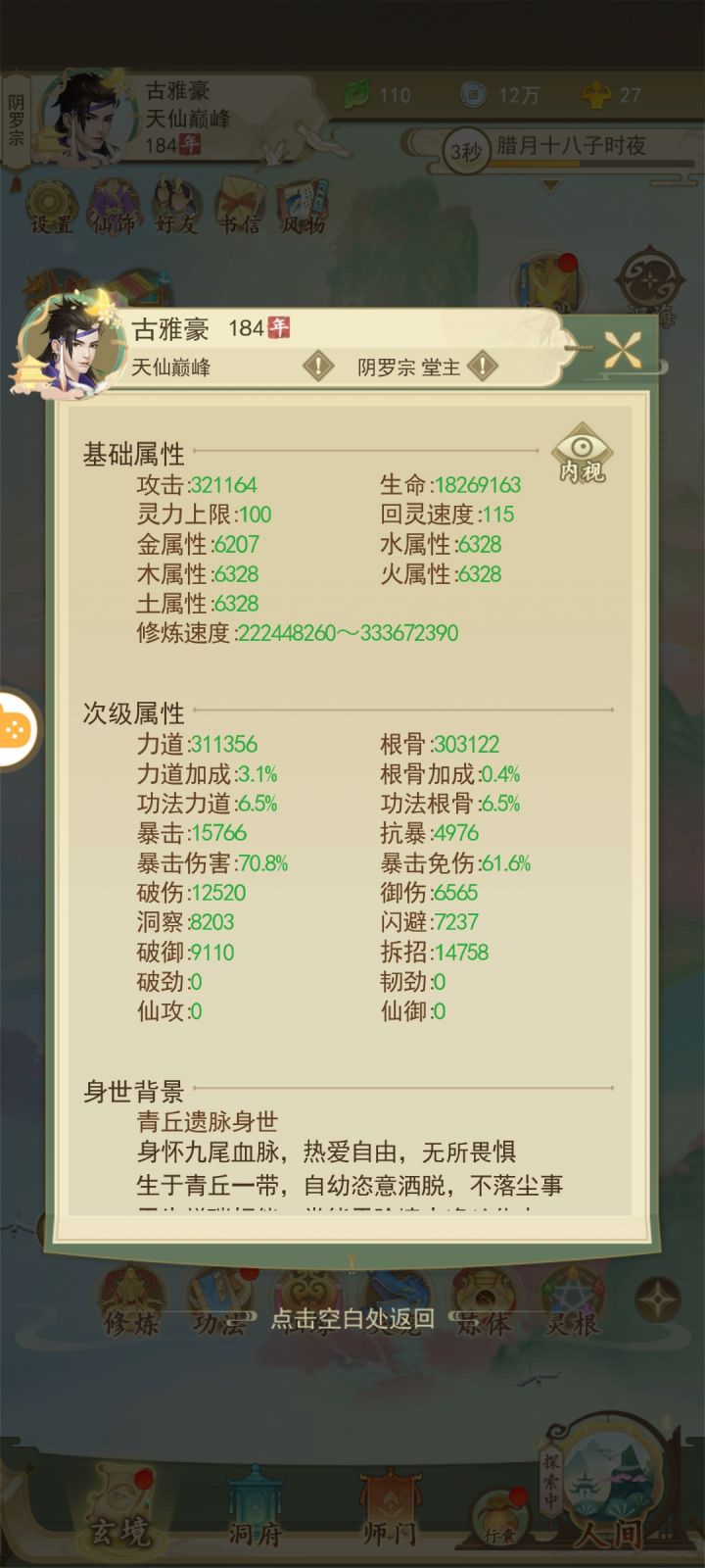破伤和力道是重中之重。因为这游戏有30秒限制,有些怪还有复活。所以,功法和灵宝,带有这两种属
