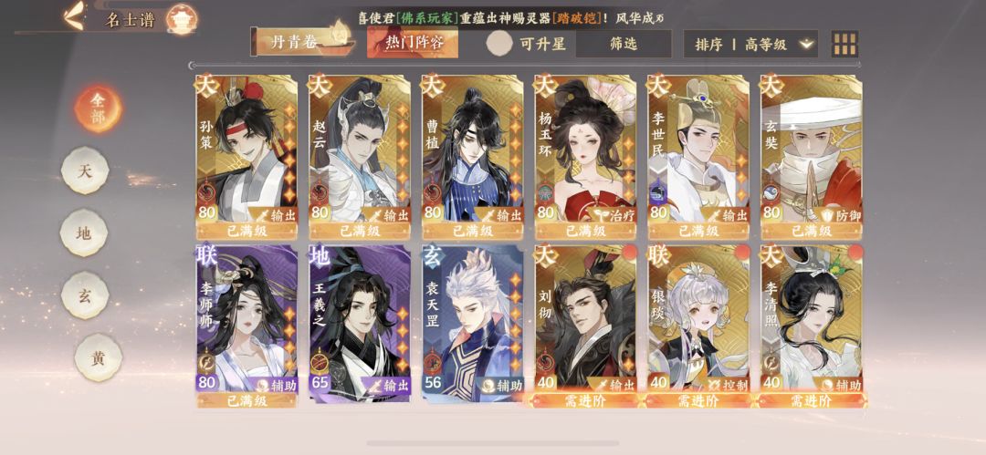 入坑忘川已经100多天了,从一开始求让纵横到现在的金戈前十,见证了忘川的起起伏伏。这几天开了新区,又有好多萌新来了,就想指导一下。(个人理解) 首先就是大家最关注的开局练啥的问题。目前很多攻略都是说开局练嬴政,我本人也是顶配嬴政,嬴政在PVE确实挺强势,而且前期嬴政打PVP也是十分强势(到后期就逐渐退出金戈,不过PVE依旧十分强势)。 不过我个人还是推荐大家开局养李白。李白算是T0级的单体,优点是