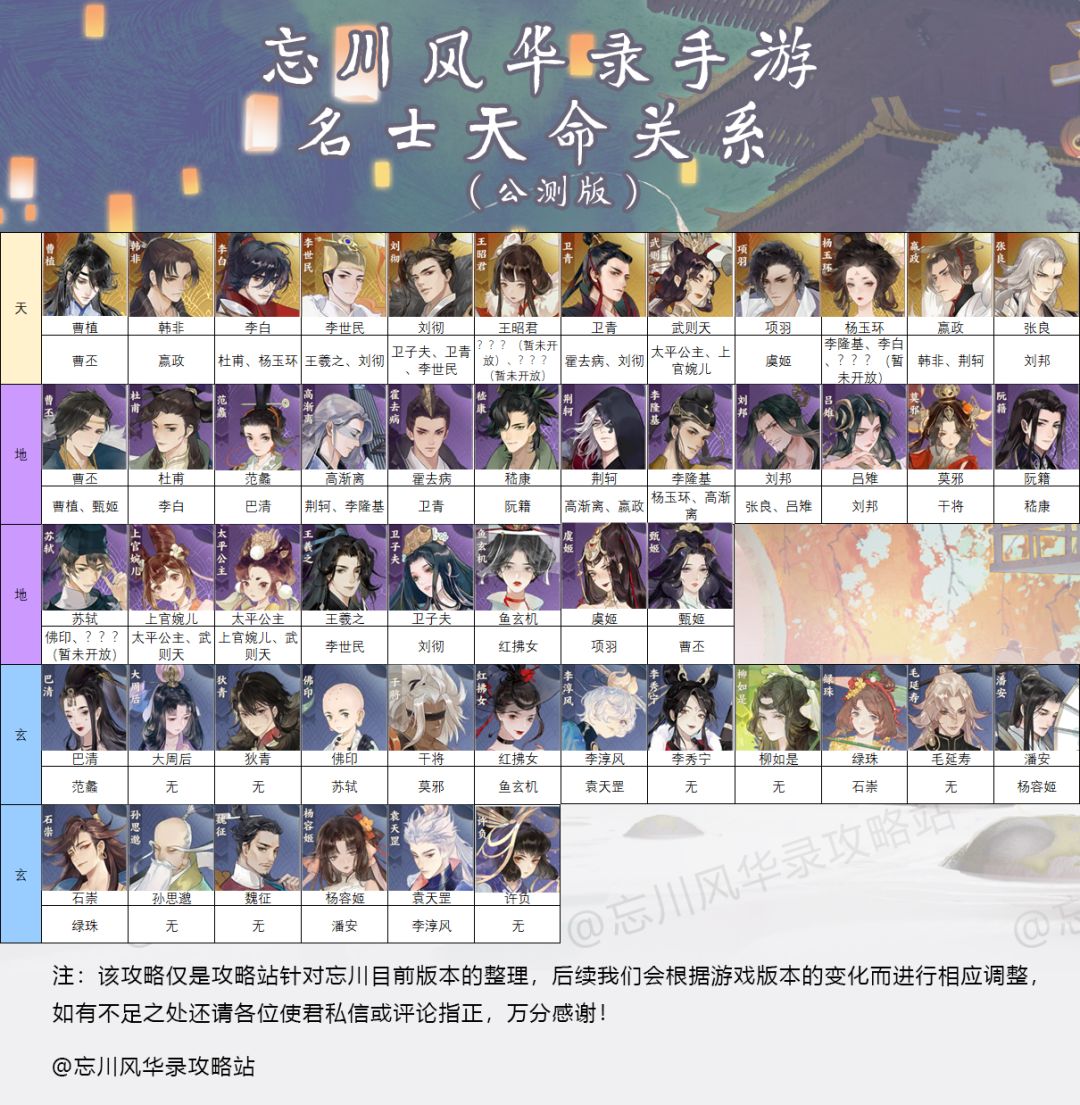 《忘川风华录全名士天命关系汇总:公测版》