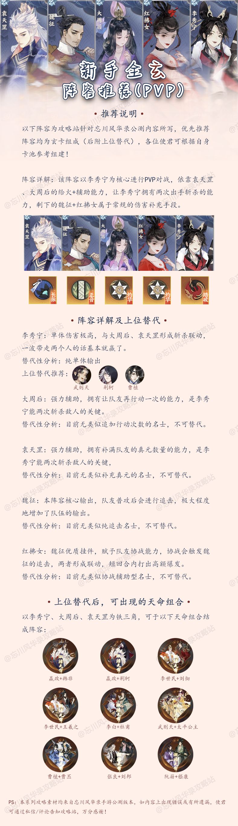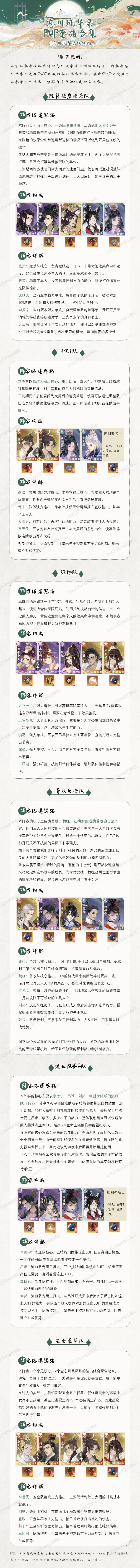 写了一份《忘川PVP套路阵容汇总》,喜欢打PVP的使君们快进来抄作业吧~ 由于站站人力有限,部分想法阵容可能不太全,因此欢迎各位PVP爱好者进来补充思路,查漏补缺~