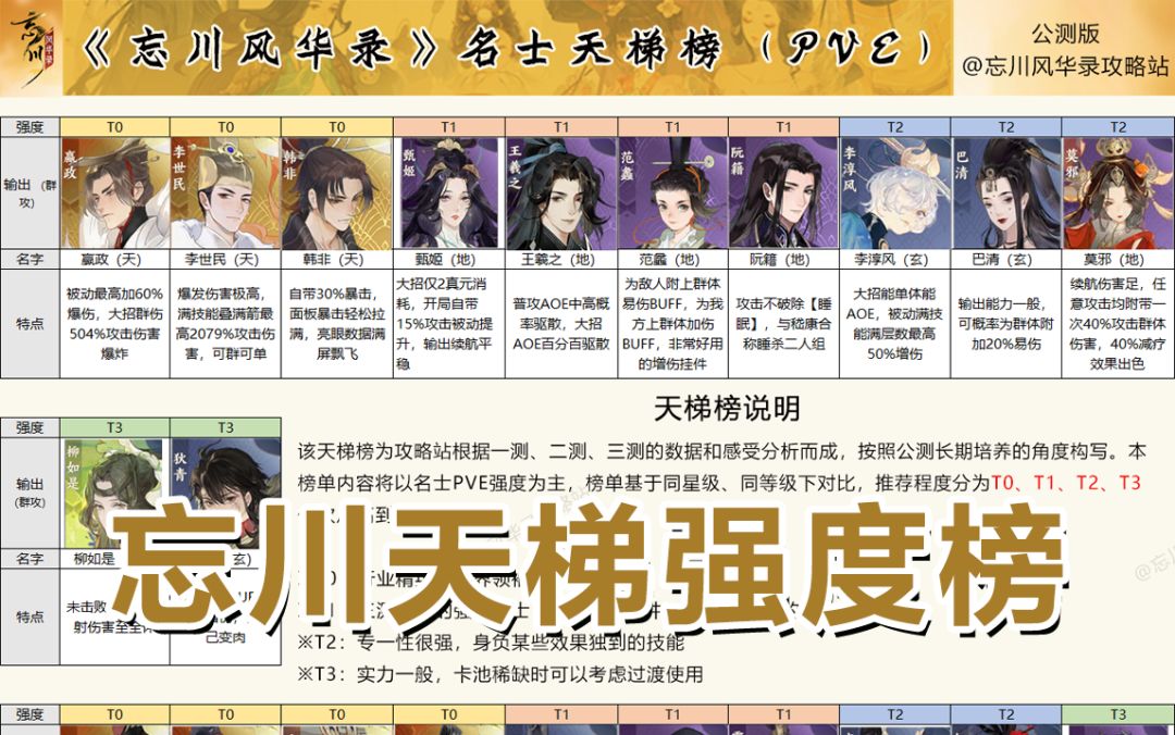 《忘川风华录名士强度天梯榜:公测版》