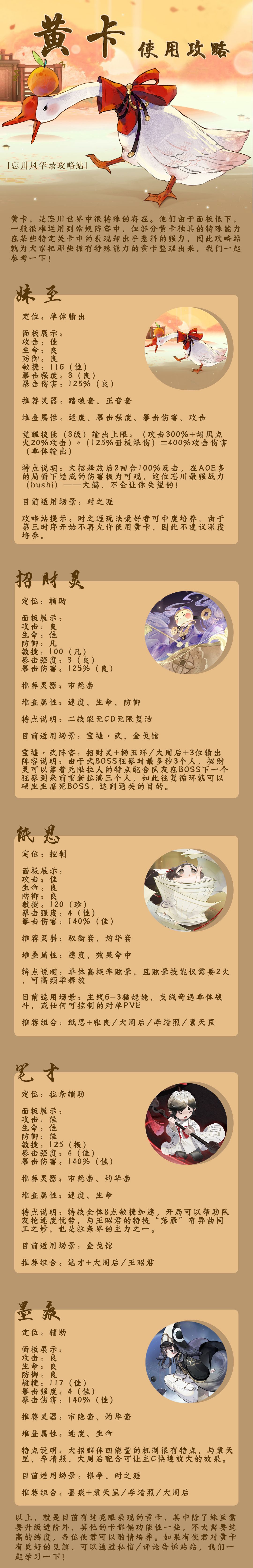 《忘川风华录黄卡使用攻略》