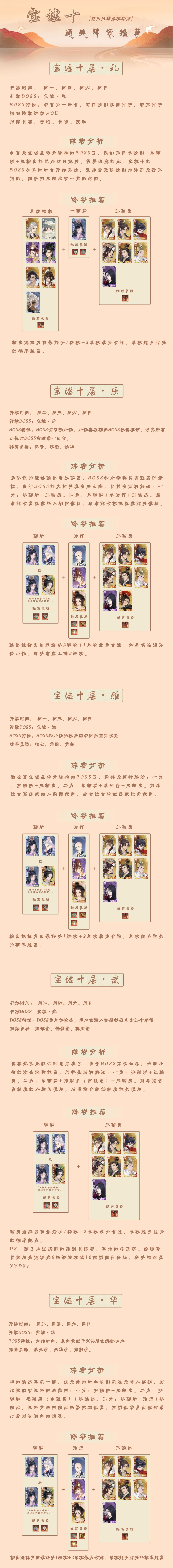 宝墟十对队伍练度的要求还是很高的,尤其是参战的几位主C,在等级、灵器方面都需要尽可能地拉满,曾经适用于宝墟9的各种逃课阵容基本都还能用(除了礼到了第四回合会免控增伤),希望能帮助到大家! 大家如果对部分宝墟通关阵容有更好的看法,可以在下方评论区指出,我们一起学习一下!