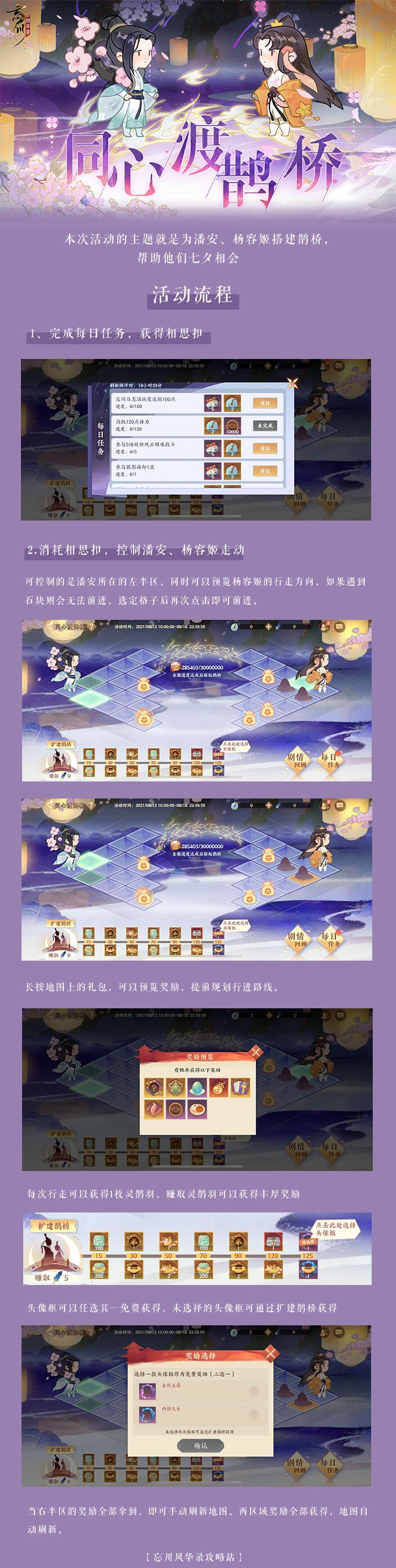 本次活动的主题就是为潘安、杨容姬搭建鹊桥,帮助他们七夕相会~ 详细步骤请戳图