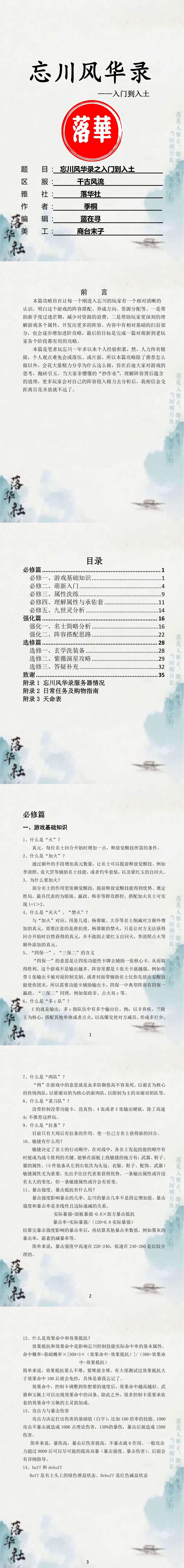 这是一篇萌新入门到理解这个游戏的攻略!已经写好了!一万八千字!对游戏里面每一个领域进行了阐释!看完这篇攻略不保证就成为了大佬!至少能帮大家少走很多弯路! 发不了PDF,我在这里当一个网盘链接吧!需要自取!我发图片太糊了!压根看不清! 祝亲爱的忘川同袍们享受游戏!热爱生活! 愿忘川能争点气,越做越好! 我通过百度网盘分享的文件:忘川风华录之入门… 链接:http://t.cn/A6amk5m5 提取码:co3f 复制这段内容打开「百度网盘APP 即可获取」[/cp]