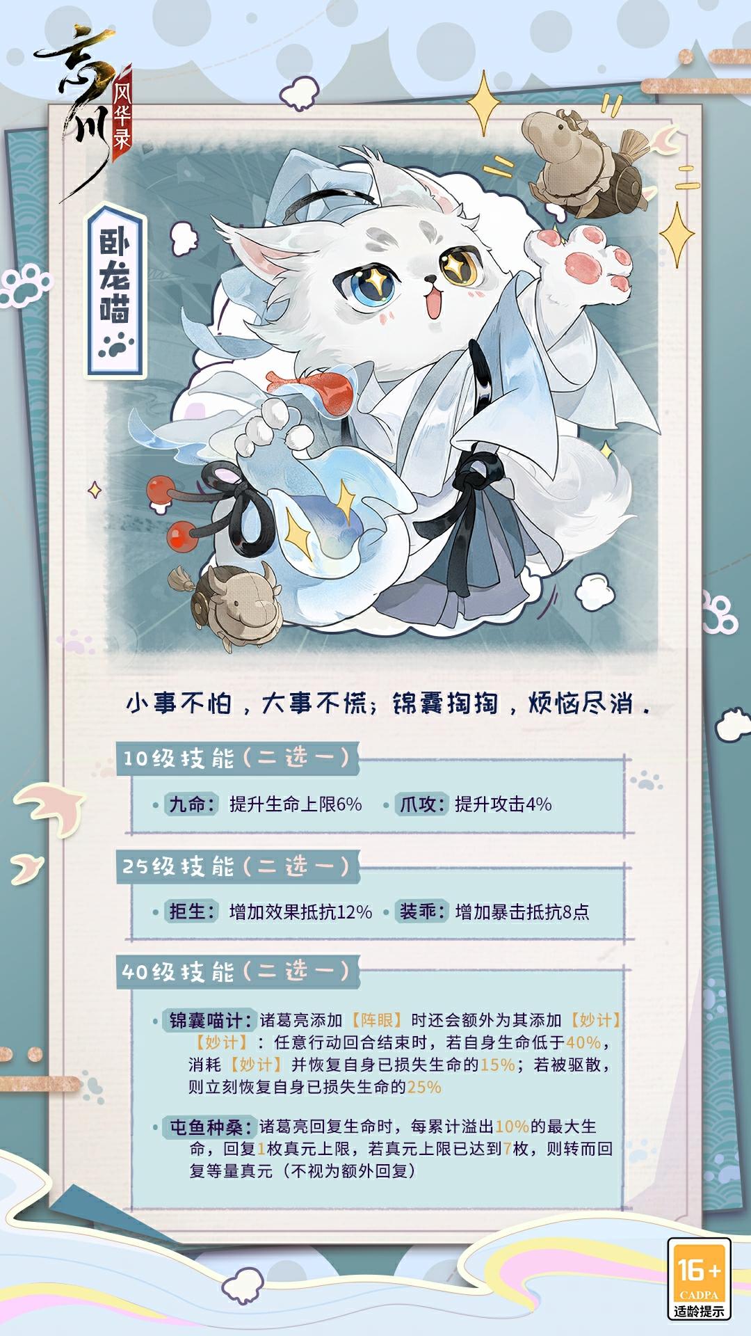 小小锦囊,满满当当,容纳珍奇宝贝。遇困局纷扰,卧龙喵气定神闲,抬爪轻拍锦囊,已然筹得破局之法。 #忘川风华录 #忘川风华录手游 #游戏推荐