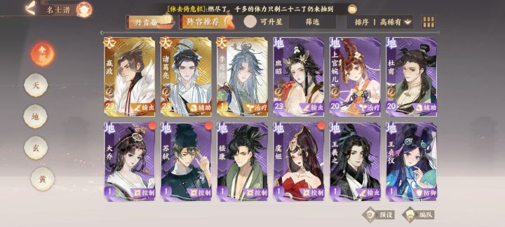 声明:本期pve不涉及具体的副本攻略,主要是关于名士的选择以及装备问题,不必严格要求对上,氪金就缩短时间,0氪就暂时延长。1.新手期:2个6星天卡2.进阶期:pve:5个6星天卡3.长草期:pvp:常用单系6星天卡。