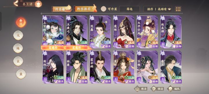 玩了大概一个月,看攻略选的政非开局,没抽丞相刘病已很符合xp,但池子一直歪也没有升星,目前准备配着卫子夫玩,对于如何养成完全没有概念(看了蝴蝶大佬的视频反而更疑惑了)现在感觉很奇怪,不知道拉谁,而且对于谁该升星非常迷惑,万用碎片感觉也不够拉好几个人的求各位大佬指指路,特别是名士猫,万用灵,搭配灵器这种我看了很多攻略发现压根看不懂[哭惹R]主要的疑惑如下:1.名士猫就是普通猫
