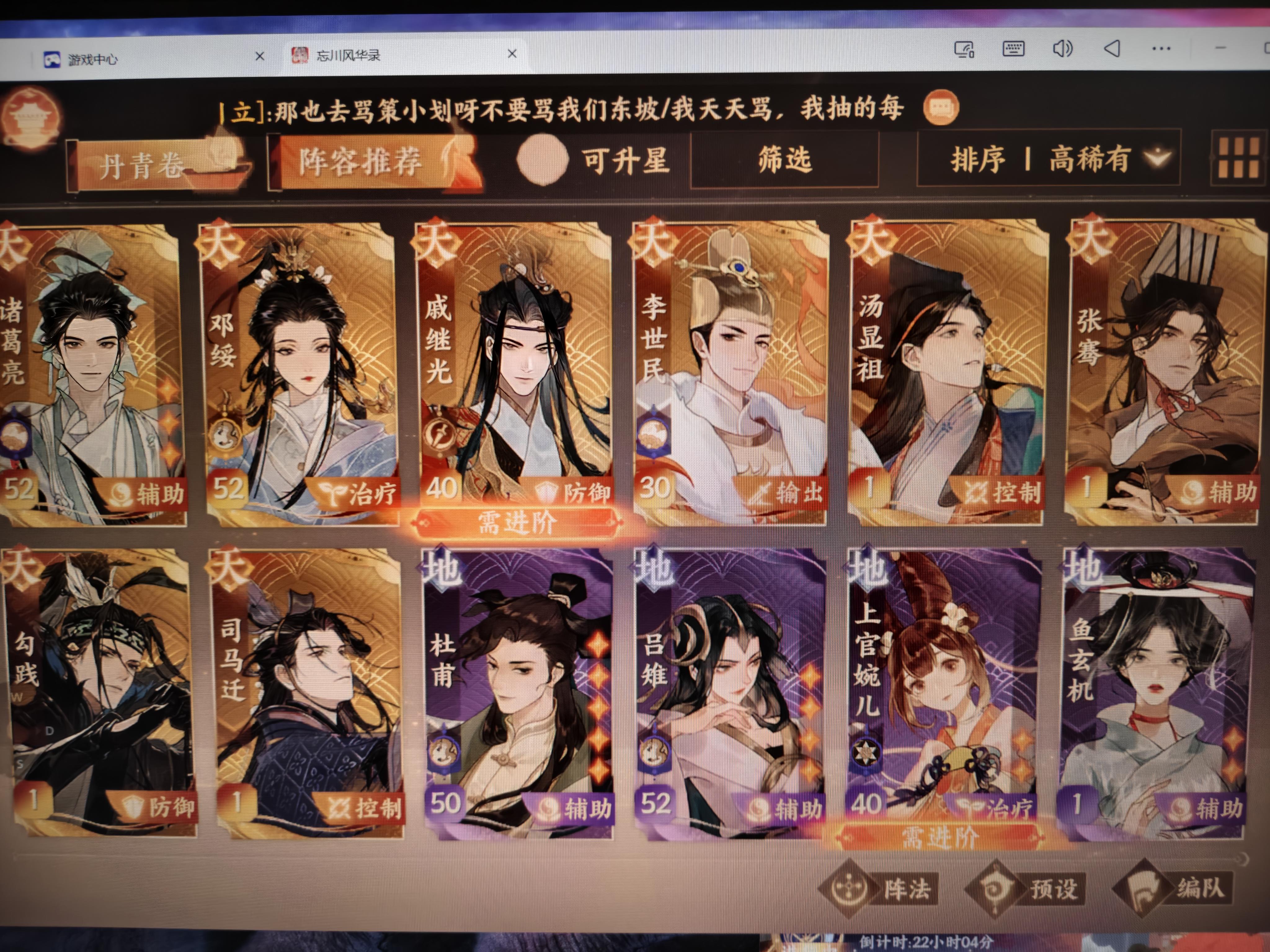 真心求教老师们,新区目前练度和卡池(有班昭,没截上),940最优先抽取谁的呀另外厉行就打算选赵云了,毕竟活动白送,打算顺带练着,金戈想组云亮天命随缘玩玩,不是冲段玩家#忘川风华录