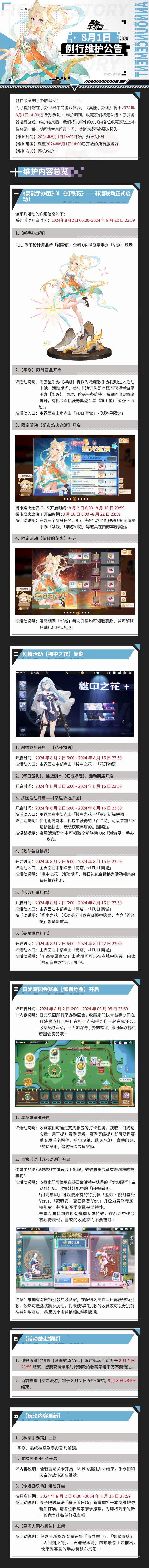 《高能手办团》2024年8月1日例行维护公告