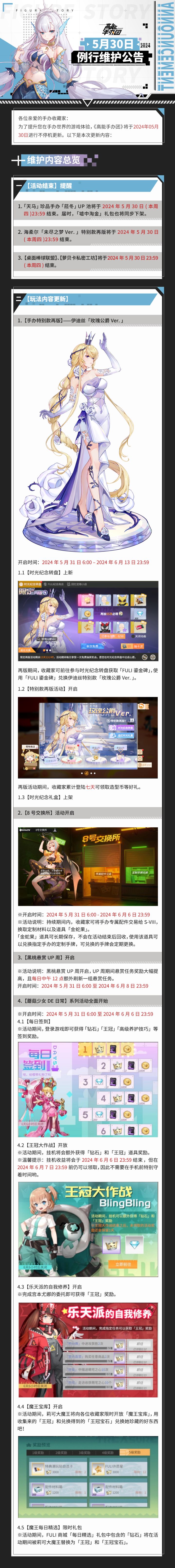 尊敬的收藏家们:我们将于2024年6月6日14:00对全区服进行停机维护,本次维护时长预计2小时。详细公告内容请点击下方图片查看