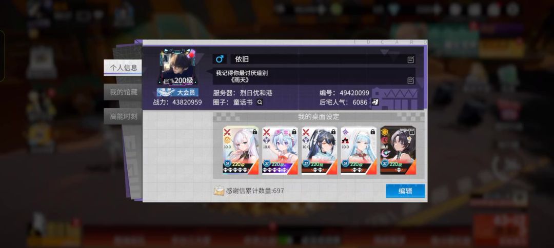 大家好,我是游戏里的依旧!有时候,玩这个游戏真的没什么期待了。玩法始终如一。活动也没有什么新奇。福利待遇还好吧!联动也没有,不知道有什么动力了。唯一的遗憾是没有穗香吧!一直以来都是看看别人家的。对于收集党的疼吧!玩这个游戏已经有三年了吧!并不是开服玩家有预约过,但当时学业繁忙!现在再读一年就大专毕业了。对生活也渺茫不知如何去向是好。或许,高能手办团是我的精神上寄托。如果联动返场的话就好了我必要穗香