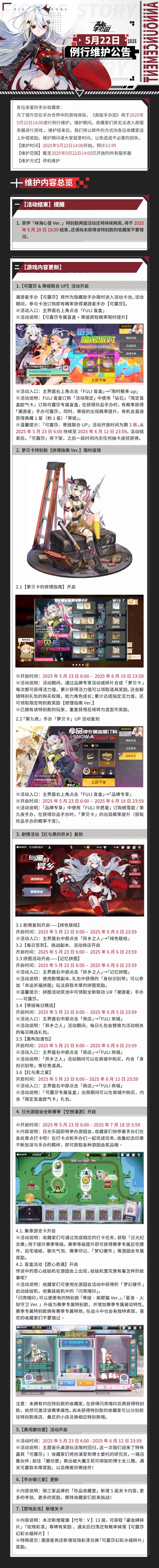 《高能手办团》2025年5月22日例行维护公告