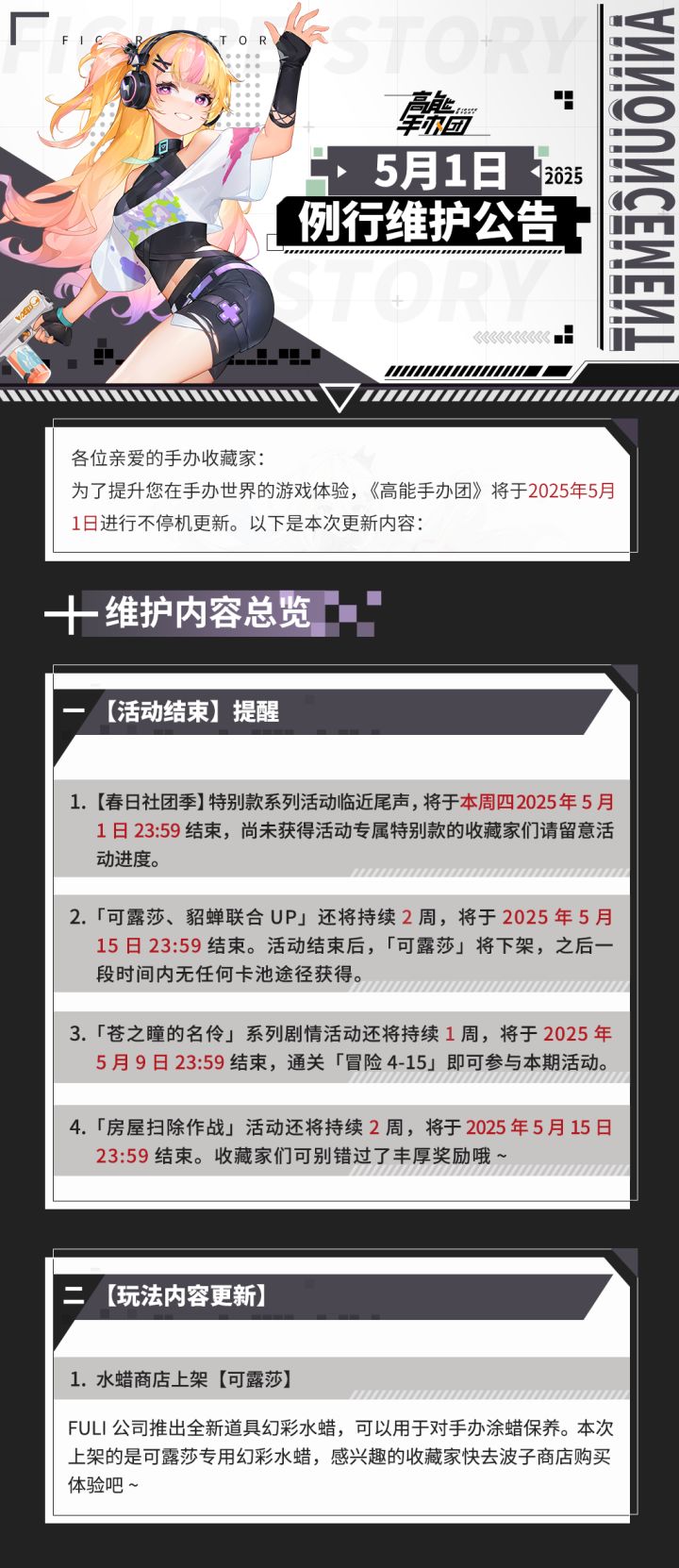 《高能手办团》2025年5月1日例行维护公告