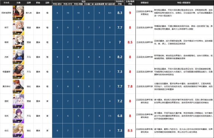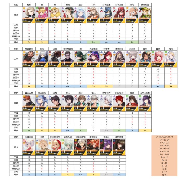 最近大家都迷上了做节奏榜,这个是我见到最全面的了。S级评定建议优先培养 ,C级评定可以考虑做狗粮,B级评定建议最高升到3星。感谢内容提供 :巴里安托忒