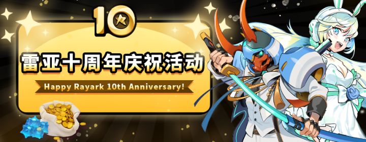 欢庆雷亚十周年,各项庆祝活动举办中!【期间限定礼服卡面】- 活动期间:9/10 ~ 9/28 10:30 (GMT +8)- 活动内容:活动期间,「芙莉」及「忠胜」将换上十周年礼服卡面与大家见面!【纪念头像登入送】- 活动期间:9/11 ~ 9/18 11:00 (GMT +8)- 活动内容:活动期间,登入游戏即可取得两款十周年纪念头像,千万别错过超可爱的「十周年限定芙莉」头像!【神