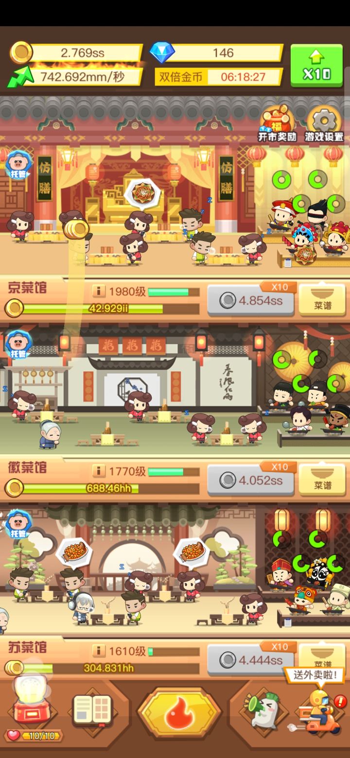 一天了一天了!hhh,这个有钻石的客人,爱了爱了不要老是说广告多,解锁客人加厨师,总共才不到70个广告,充值都没有,整天嫌弃这嫌弃那的。最后让大家看看一天的成果,中度肝,毕竟王者新赛季,没有24小时肝这个休闲小游戏