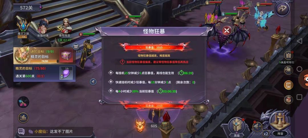 首先这游戏0氪和首充党都能玩,大佬就更不必说了。前期攻略如下:大佬和首充党0氪都请仔细看完吧。很关键很关键!!! 第一步:进入游戏先不急着充钱,按着主线一直冲关,冲不动了就升阶或者升星,接着继续冲。快速挂机可以降狂暴值,不急着用,300关开始每一关加6点狂暴值,基本上第一天到350左右就差不多了,350开始每一关加16点狂暴,晚上9点以后可以把快速挂机用完。第二天:0点之后狂暴最好降到最低,然后开