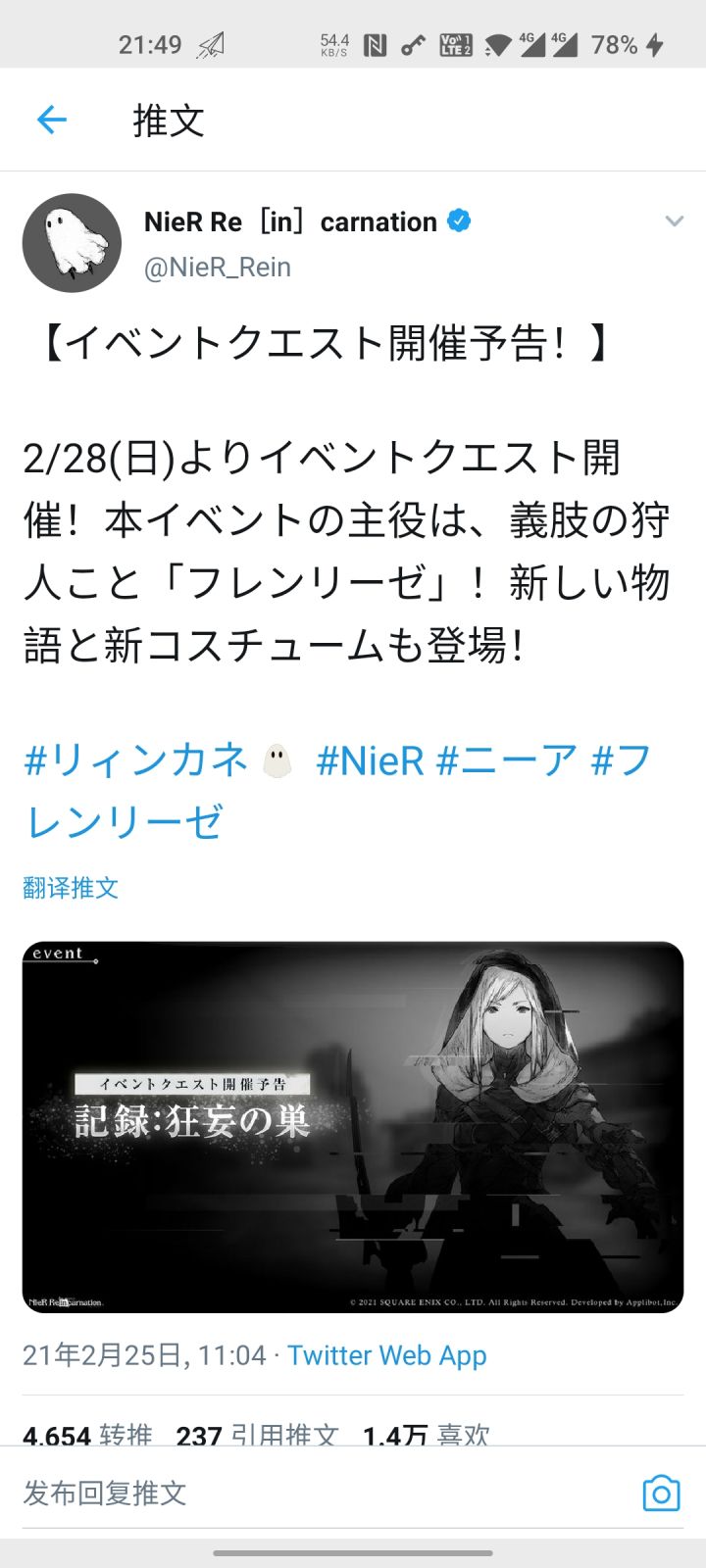 尼尔系列手游《NieR Re[in]carnation》 繁体中文版今年7月推出