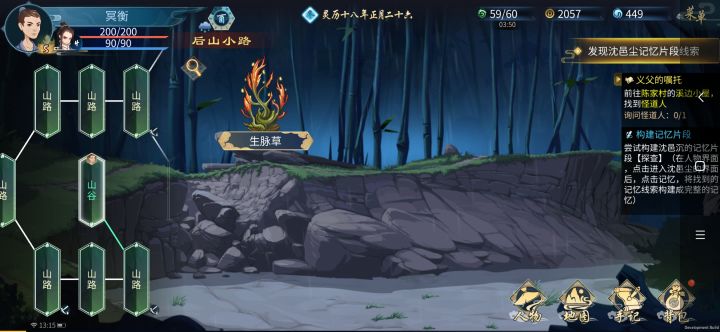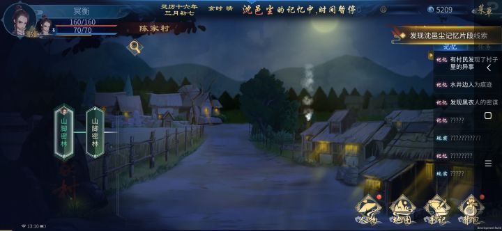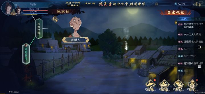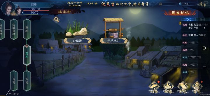 记忆全图,另外记忆点是在废弃屋子进去,然后记得是晚上去后山采药,在山谷稍微拖动一下就能看到
