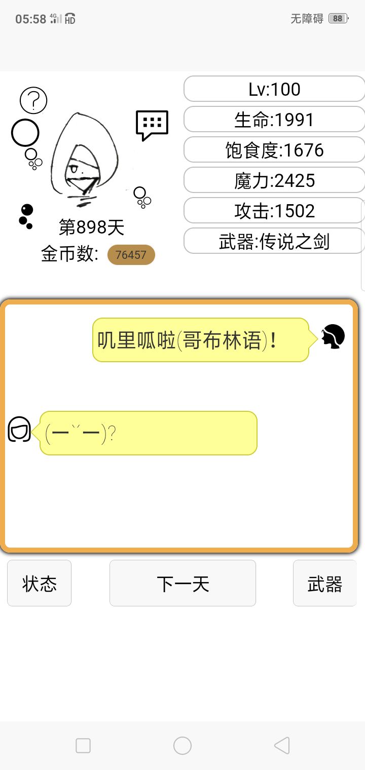 第一次玩,第四天直接获得传说之剑。