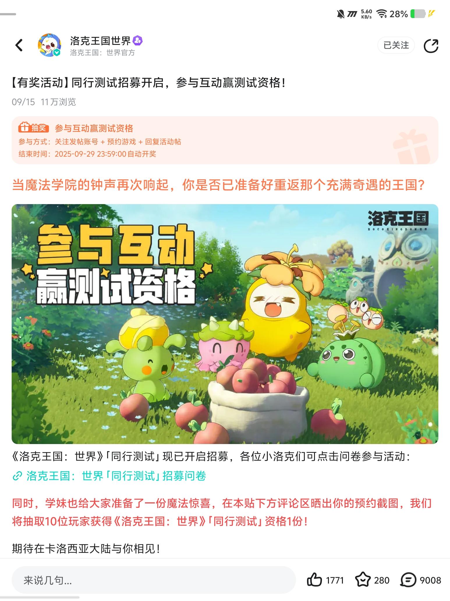 [表情_羞涩][表情_羞涩]等待了这么久终于有资格啦~ [心动小镇_点赞]还没有获得资格的小伙伴也不用灰心,现在还不算晚,还可以通过以下几种途径获取: 1.首先在25号还有一次资格发放,可能你的资格只是还没有发放到而已 2.洛克王国在26号有一个抽资格的活动,点下面链接就可以跳转到活动页面 快来 TapTap 加入「预约《洛克王国:世界》赢PS5、京东卡等海量福利!」 🕹 tNmbIb8U