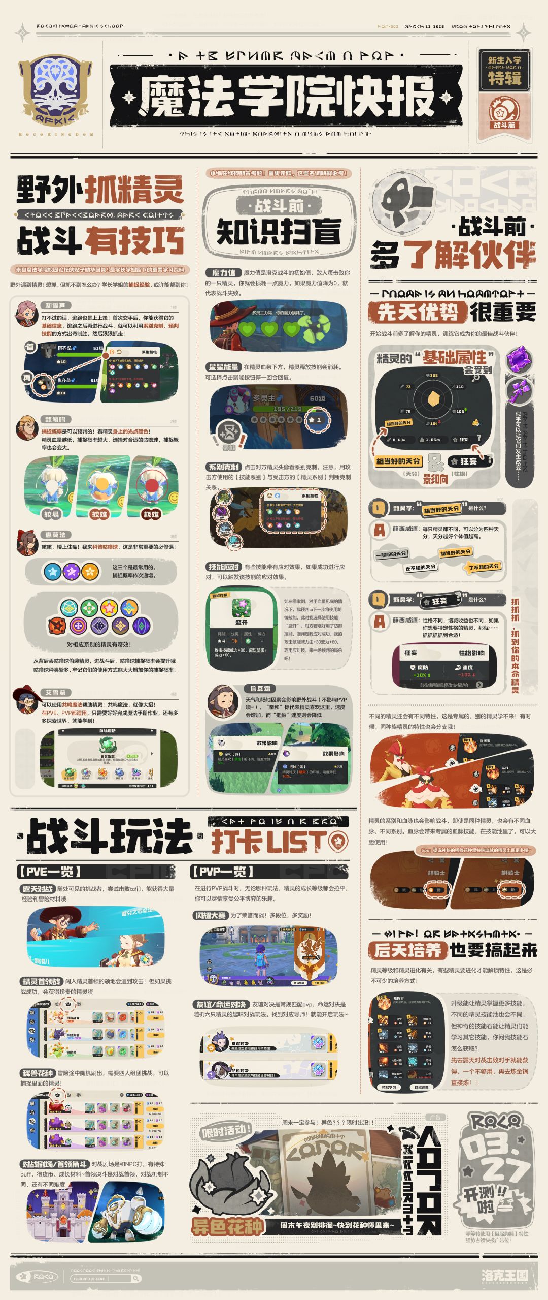 亲爱的小洛克,魔法学院招生工程即将落地, 为促进学生多层次、多维度、多领域的成长 学院快报社瞄准更高站位、聚焦重点难点 大力推出「新生入学特辑」,内含丰富战斗资料 能为小洛克打牢实战之基,巩固冒险之本,请仔细学习,深度消化! 这将为您的战斗提质、提效、提优,让您获得更好的冒险体验~ 快报社小编寄语:点个关注点个关注点个关注!快报社由学院学生联合发起,快报内容覆盖范围甚广,大至洛克王国的宏大探险,小