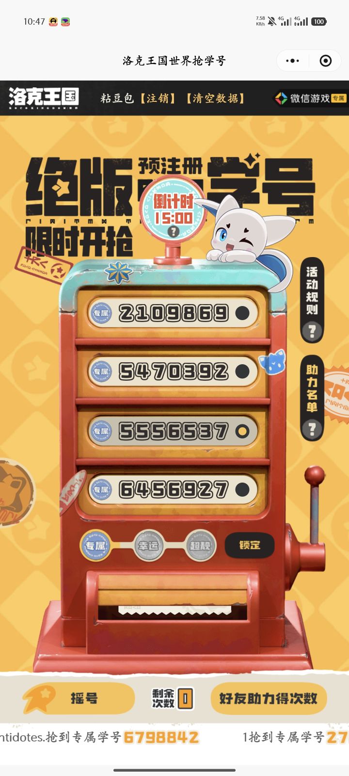 感觉大部分人是想着反正没啥成本,抽到靓号还可以卖钱,抽不到也无所谓。感觉这些UID和名片啥的更像是数字藏品确实没啥意义啊,我玩游戏从来没看过UID昵称啥的都是随便选的,估计可以满足部分玩家的虚荣心吧。#洛克王国世界开启预注册 #洛克王国世界