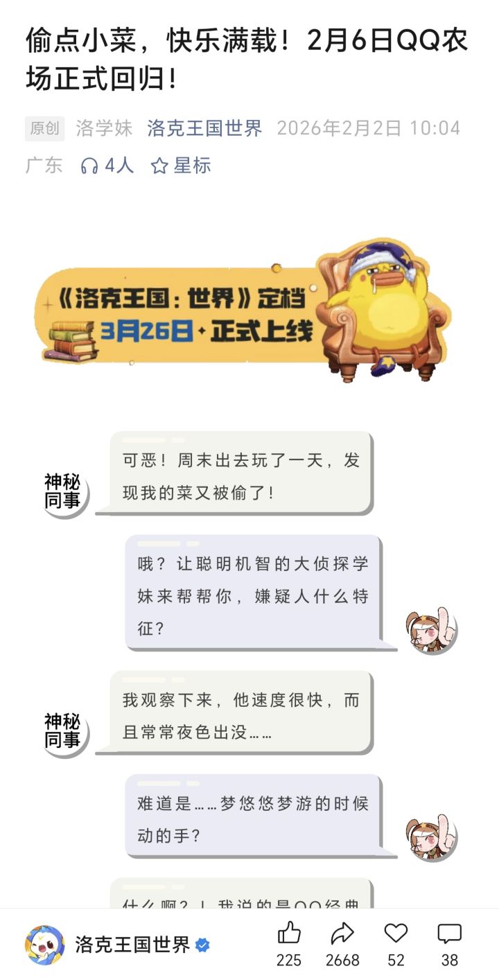 别人家的官号:新角色/版本预告/福利密令。你们家的官号:今天云不错/隔壁公司猫生了/猜猜我在哪。 所以现在洛手的主业是“内容跨界气氛组”,游戏只是壳对吗? 还是说运营在下一盘大棋?用无关内容训练玩家的“信息过滤能力”,等我们练成火眼金睛,就能无缝应对游戏里最复杂的隐藏任务了……谢谢啊,这波属实是赛博修行了。 建议洛手账号直接改名“网络邻居大妈日常”,发游戏内容是副业,分享美食、段子和深夜哲