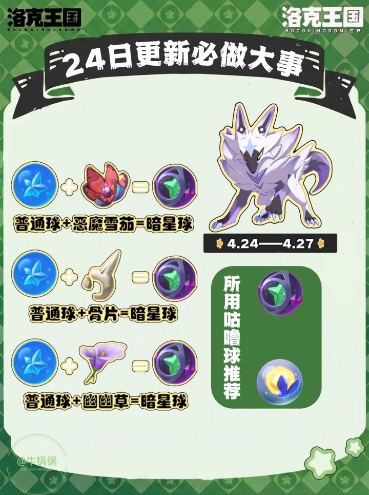 折射技能、兽花蕾、星尘虫、属性克制表、咕噜球合成材料、性格表。