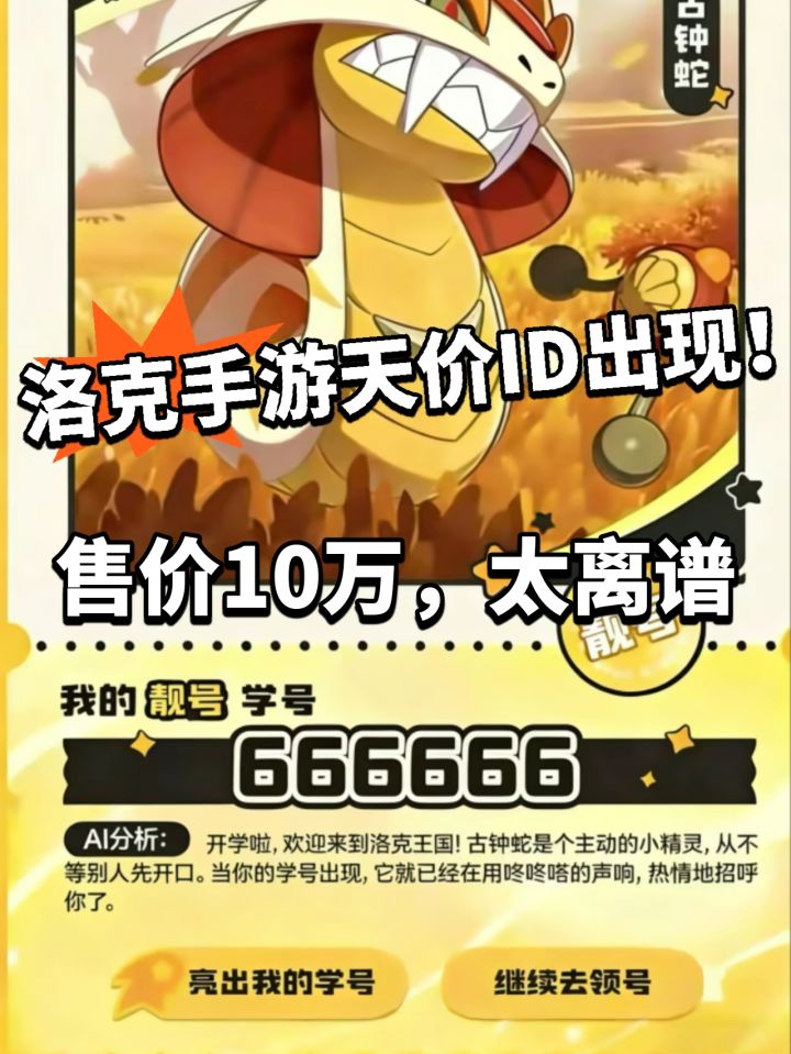 亲爱的小洛克们: 大家好!感谢大家对《洛克王国:世界》的热情支持,因抢注专属ID人员数量远超预期,小洛克们可以自主前往官方合作渠道闲鱼进行购买,为深表歉意将在公测之后为全服小洛克们发放1个棱镜球作为补偿,登录即可通过游戏内邮箱领取。感谢小洛克们的理解和支持,3月26日,我们洛克王国见!