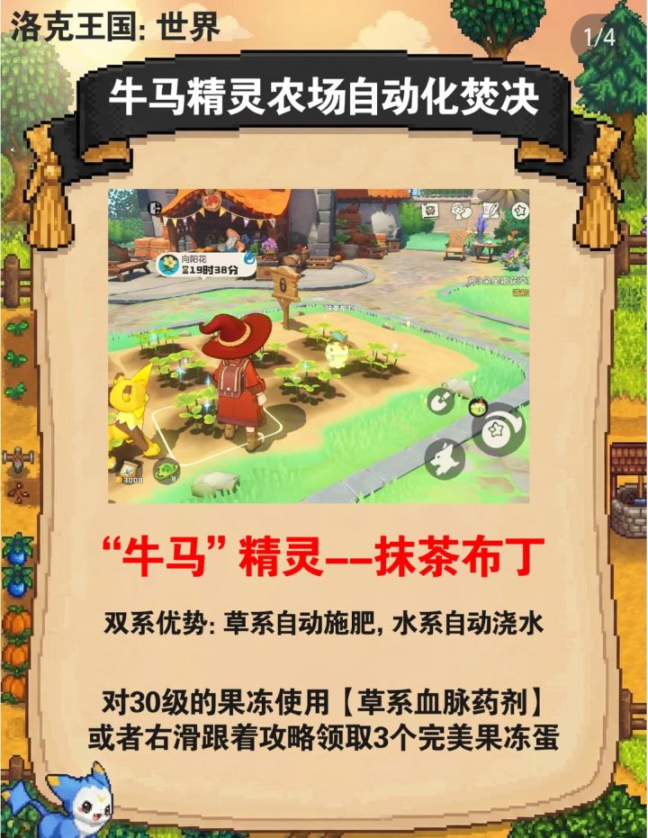 还在手动浇水施肥?学会这套“自动化焚诀”,直接把农场交给牛马精灵,躺着收菜爽翻天!👇✨ 核心配置:抹茶布丁去彼得大道做隐藏任务拿“果冻蛋”,进化成抹茶布丁(水+草双系)。把它丢进农场,自动浇水+施肥一气呵成,彻底告别手忙脚乱!⚡ 效率翻倍技巧挂机收菜:播种后放出精灵即可挂机,成熟后骑大型坐骑路过一键收割。增产Buff:队伍带“爱分享”特长精灵,采集产出概率翻倍。💎 懒人总结一只抹茶布