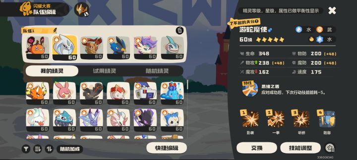 闪耀大赛有个隐藏机制,比对面多带几只随机精灵就多加几颗星,此时只需要一只伊兰亚龙带五只随机精灵,赢一局最多可以加6颗星,输一局才减一颗星。伊兰亚龙带氧输送,绵里藏针,超导,叶绿光束,武系血脉。碰到黑兔开局,直接使用源力冲击,对面黑猫开强化的情况下可以直接秒掉。碰到天鹅开局,一发氧输送强化,接一发超导可以直接秒掉。碰到迪莫、独角兽开局,直接一发叶绿光束可以直接秒掉。碰到其他开局(不是冰系)