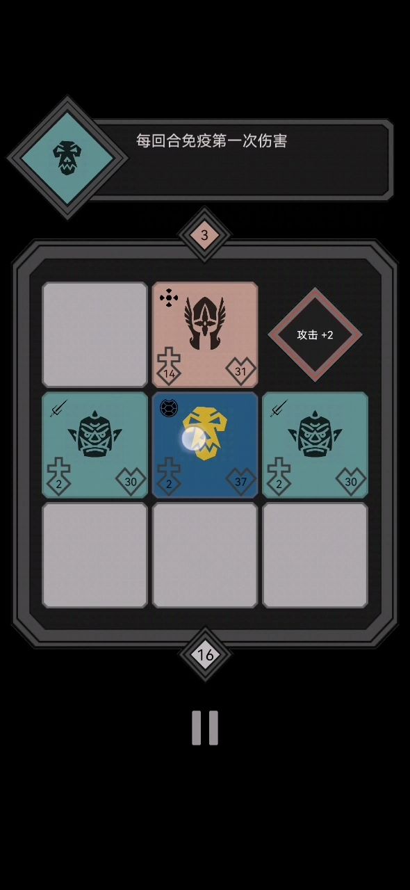 作者后续没有修改了。。开局吧英雄祭天二个,只留下一个英雄,会很容易。😏😏突然回味过来,怪兽为什么不让他去踩掉血的,顺便可以换一个我打的舒服的位置。。给怪兽去自己打的舒服的位置,就通关无难度。。很有趣的九宫格战旗游戏首先,三个人,只能移动三次,超困难级别。。。献祭一个人,二个人移动还是三次,简单级别。。献祭二个队友一个人移动还是三次,吃的加成也够多,一拳超人级别。。