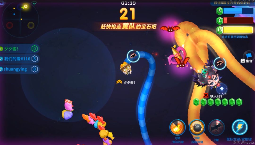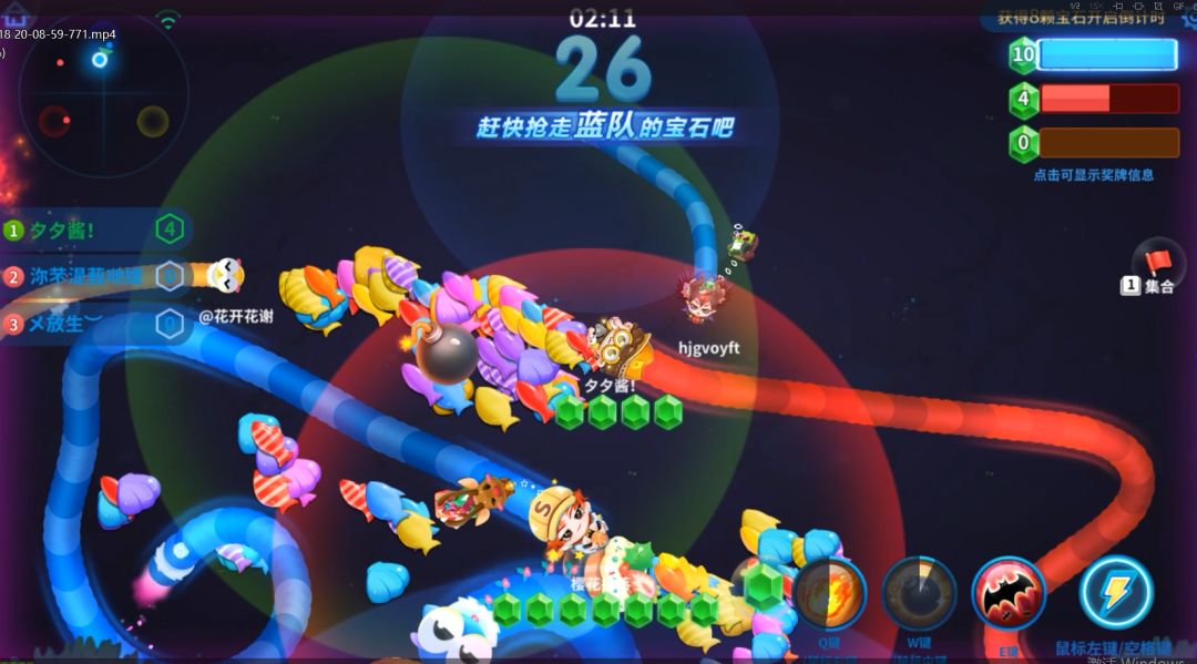 蛇蛇争霸:宝石争霸模式,蓝队那到全部宝石只有小夕一个人在阻止