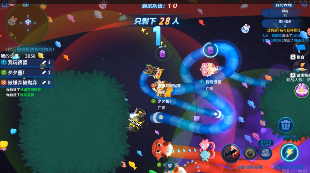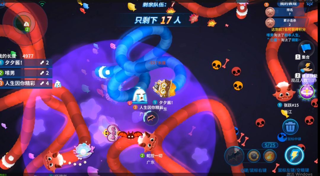 蛇蛇争霸:自由战模式一局下来小夕一次都没有死,最后才第四名!