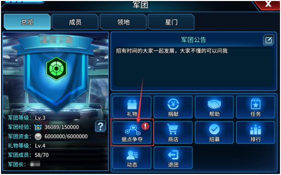 想要参加据点争夺活动需要加入军团才可以参加活动,而且活动只能由军团长或者副团长来开启(开启后活动持续2小时);其实这个活动的机制和遗迹探险活动的玩法是差不多都是通过占领相邻的,不过这活动需要军团的成员一起同心协力通过击败据点的守卫来占领据点来获得战利品;需要注意的是,如果军团的成员成功击败所有守卫的话,次日开启的话将会提高活动难度。