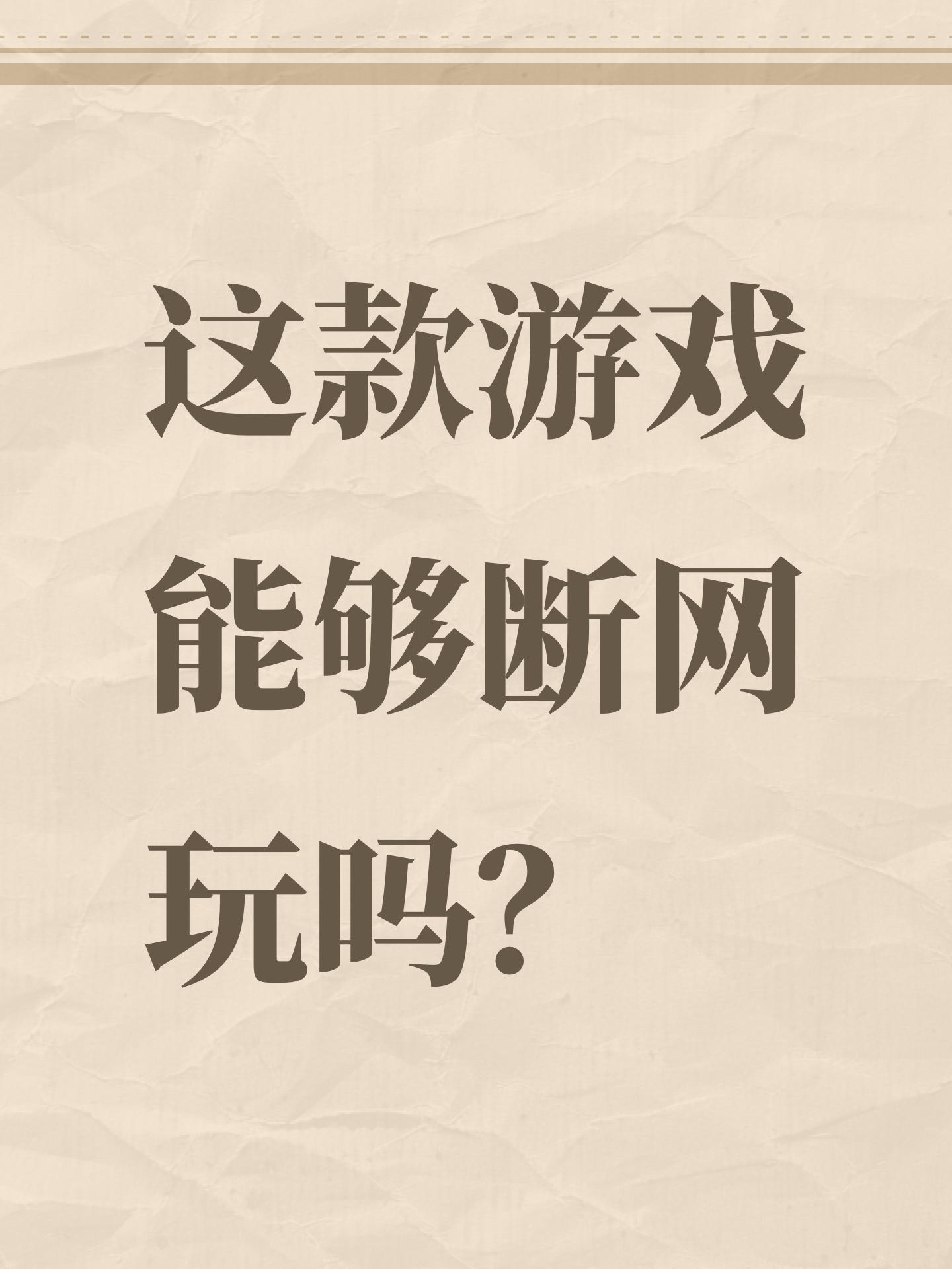 这款游戏能够断网玩吗?