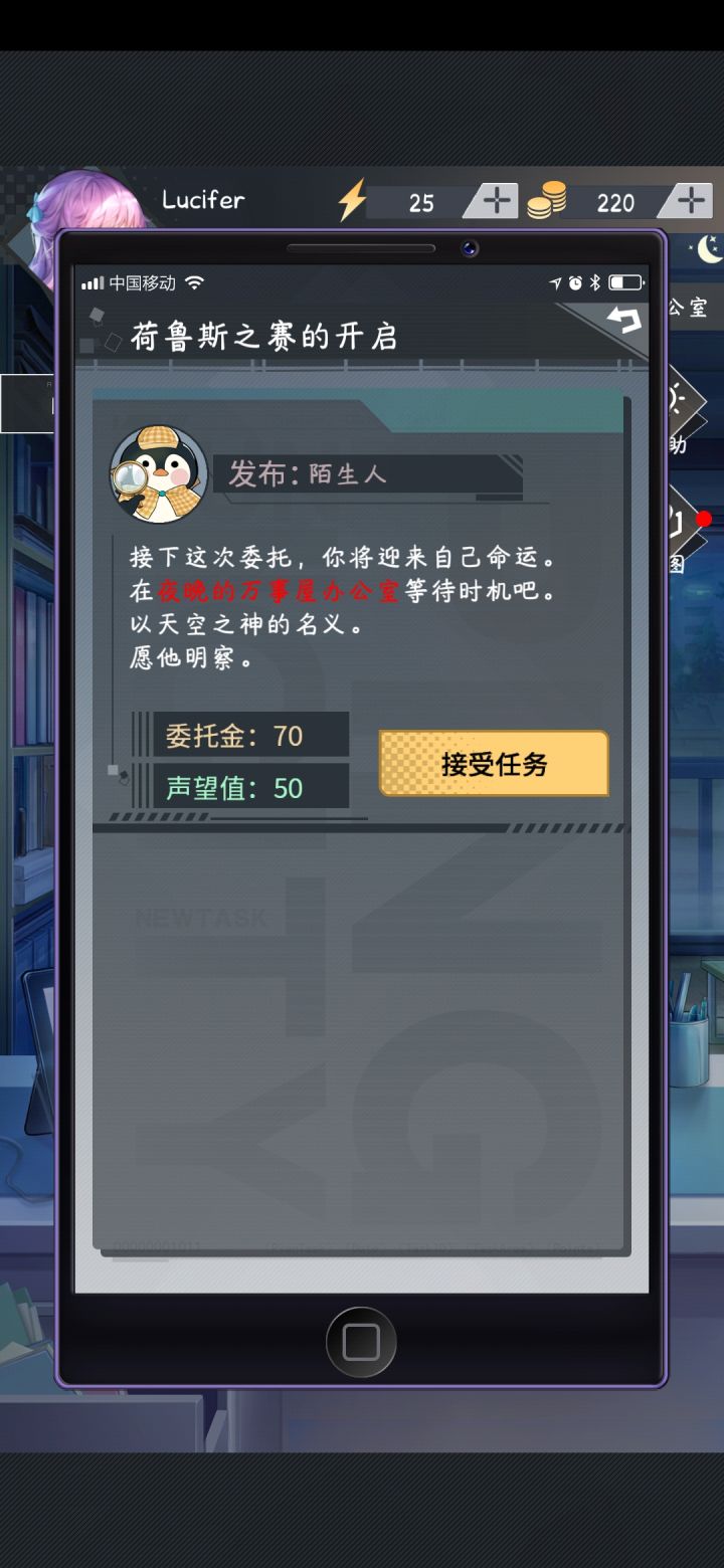 1.艾迪托比的委托想要获得阿耶梨汁,需要通过便利店小姐姐的游戏,在便利店里找到:咖啡、糖、果汁。三件物品分别位于左下角,中间,以及右上角。————————————————————2.荷鲁斯之赛的开启首先是接取任务,在委托里找到任务,并接受委托。里面告诉我们可以在晚上等待时机。在床上摸鱼到晚上的时候,手机里传来信息提示,告诉我们有快递来了。在桌子上发现一封信,好精致啊ヾ(✿゚▽゚)ノ。