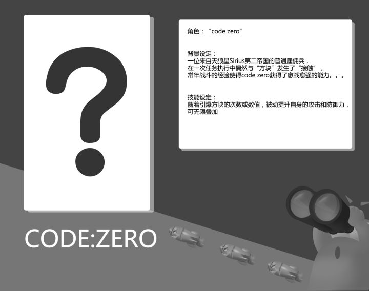 可能部分拾薪者知道,聚爆方块之前的demo在对战中只有能量和道具玩法因此被大家指出:“很快就会觉得无聊,要是能加入宠物之类的就好了”因此,在目前开发的版本中,我们完全摒弃了能量、道具的玩法,玩家今后将直接以角色的身份对战,下面是我们决定首批公开的两个角色设定,目前还没有命名和立绘,所以用代号和问号代替。同时,之前的道具场、能量场,可能要和大家告别了并且之后的攻击特效,将不再是单调的“