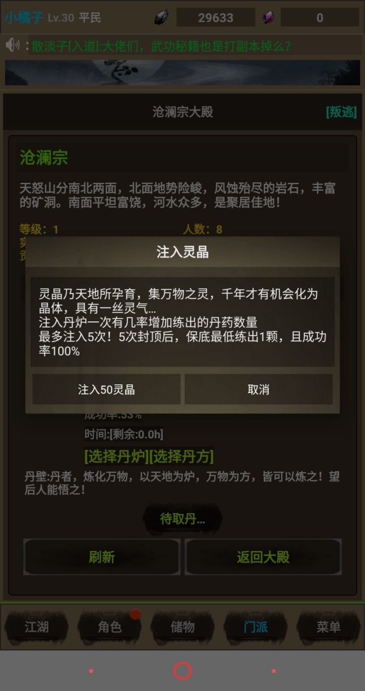 还有道友在为炼丹而烦恼吗?50个灵晶就可以增加成功率并且有几率练出不止一颗的丹药,入道丹成功率也调整到了68