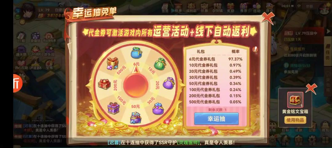 等级上限开放了,但是吧作为一个佛系(白嫖)玩家还是安安心心卡79攒资源吧 每天差不多三十万绑钻 这还不算出售金币的 攒一只ur还是要不了几天的#攻略#游戏安利#游戏推荐