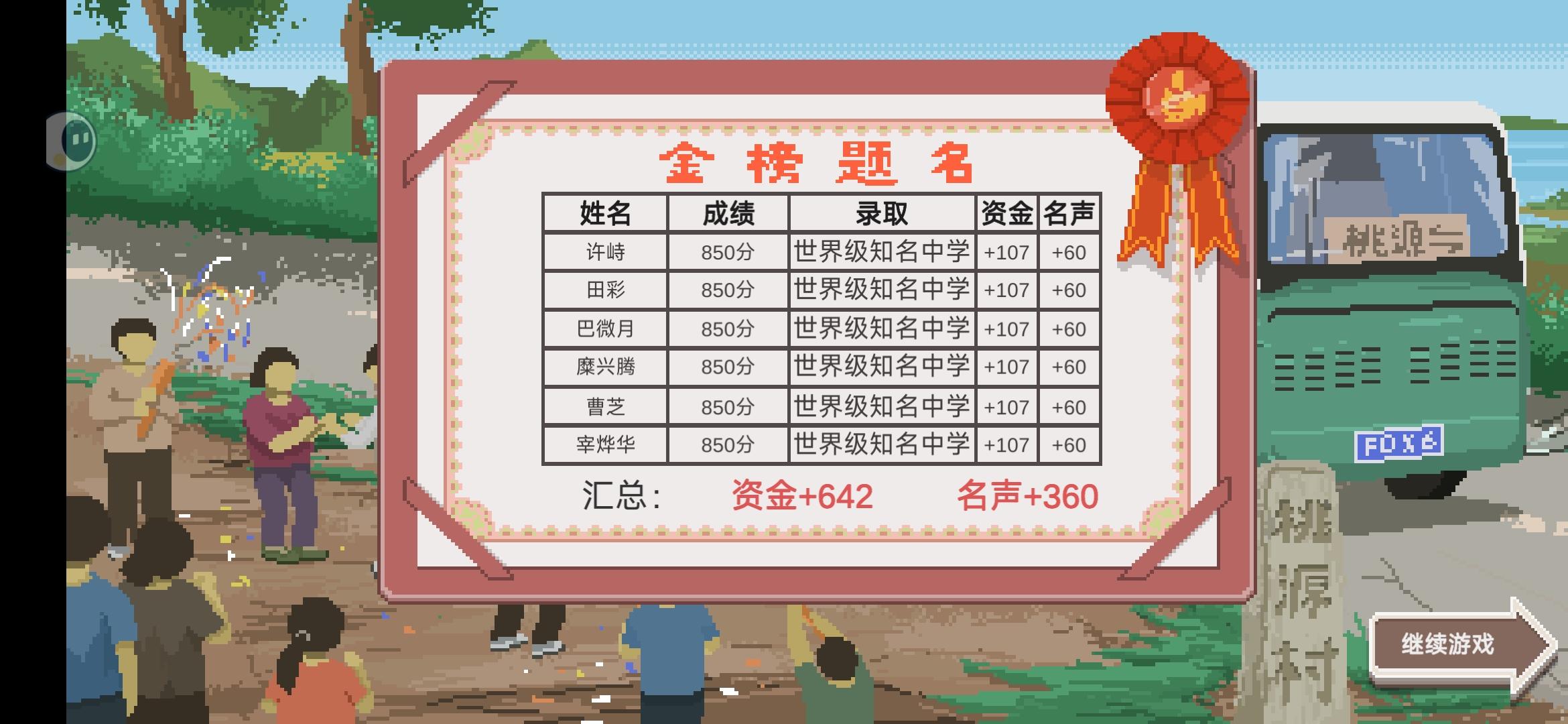 不想玩了 玩到后面 其实就是为了让学生考好 玩到后面越熟悉 那些其他活动就很无聊 学完习 还有一大堆体力 也不想干任何事情 还有就是那些农产品 物资什么的 每次只能获取一(除了种地得到的)我觉得基金会能多弄一点奖项 临近考试的时候我希望 那个试卷厂可以复印试卷 额外提高学生知识点 最烦的就是刚开始要弄学生的心情 登山 一次上去下来的东西有时候都没军用饼干值钱 不过整体来说是好玩的 不枉我玩了两天#