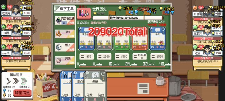 通关啦!!!感觉特别有成就感。刚开始没玩明白,第一届跟着教程走,很幸运遇到了两个独特教具,每天上3节课加布置作业,努力赚钱上课外活动维持学生心情,后面都考上了县重点高中。就在我以为我第二届要靠着两个独特教具大杀四方的时候,结果告诉每一届道具和卡牌都要重置,当时想的是没关系,就算是这样我也能带着我的学生考上更好的学校,我继续用我第一届的打法给学生上3节课不布置作业,上课外活动,结果就是第一次期末考试