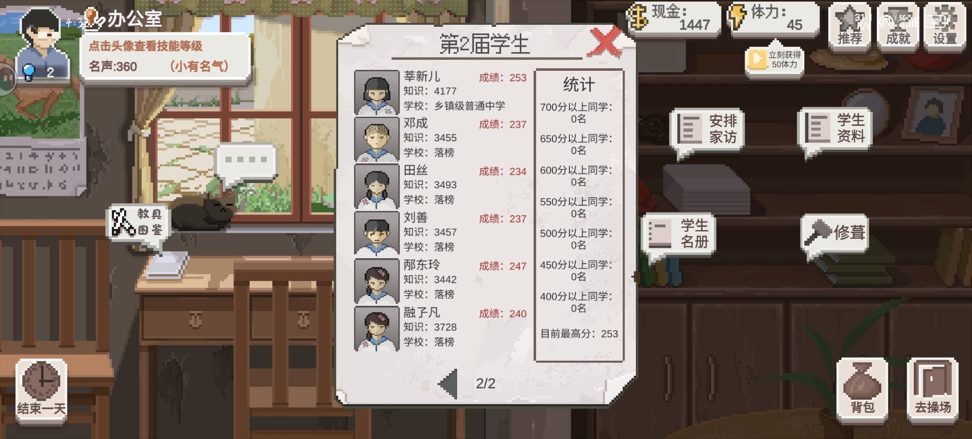 我不管,我是真爽了!我从小就乐意当老师,这个游戏圆梦了不说,我是真的有因为有学生考得更好了,然后乐开了!以前我也不是没玩过这种游戏,每次都玩不好。这个游戏我第一次玩,第二批学生就上400分的了,我心里原本还觉得他们可能能都通过就不错了,结果这么好呜呜呜!都是好孩子呜呜呜!而且他们特别牛,我上压力他们还能每天心情特别好,明明心态都不咋滴,家访我也刚反应过来给他们整了