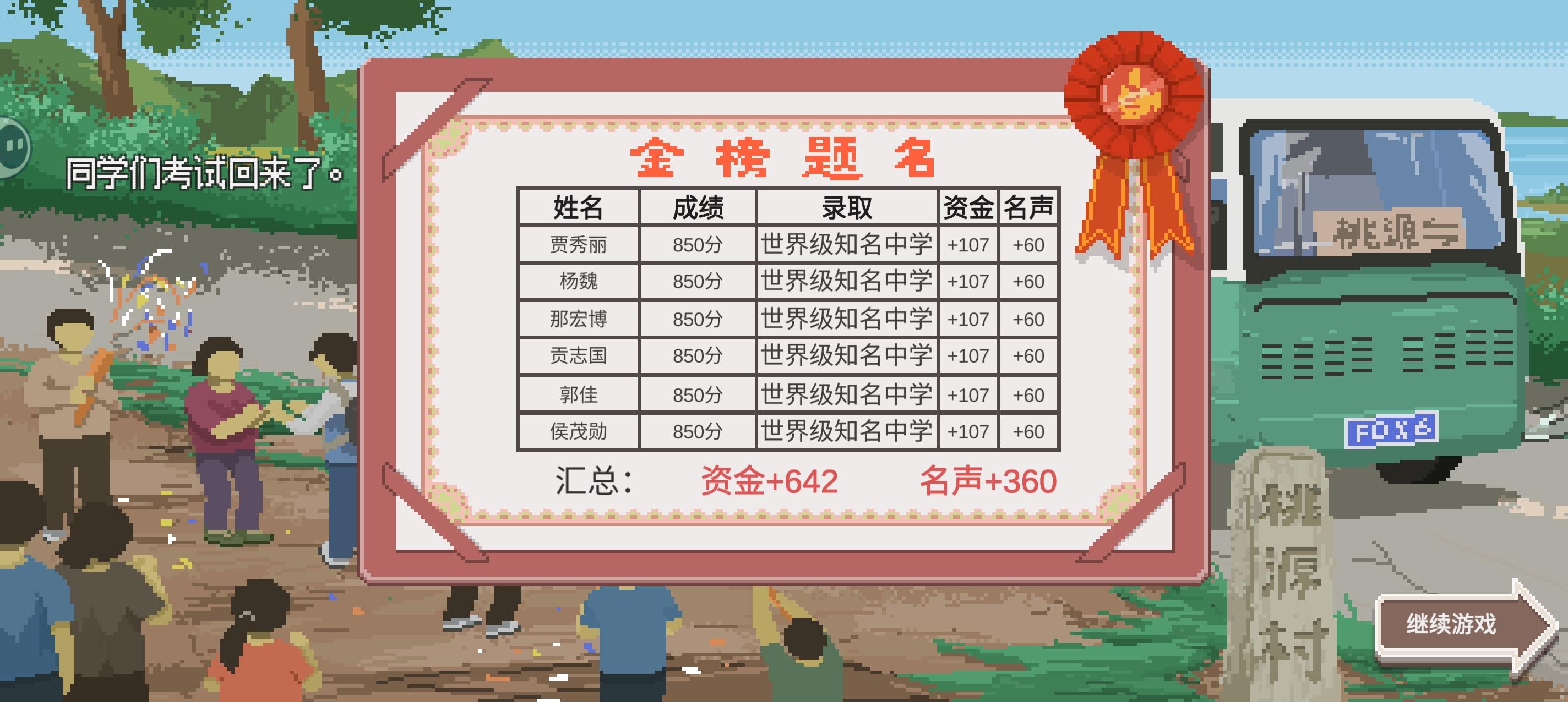 真的很可惜啊,后面几波学生都没有这么高分了,后面几波都没有刷到鱼类标本了,可惜当时不知道要多少知识才可以上世界级知名中学,所以一个比较低的学生,我也没有去拉他#单机游戏 #游戏日常 #乡村老师