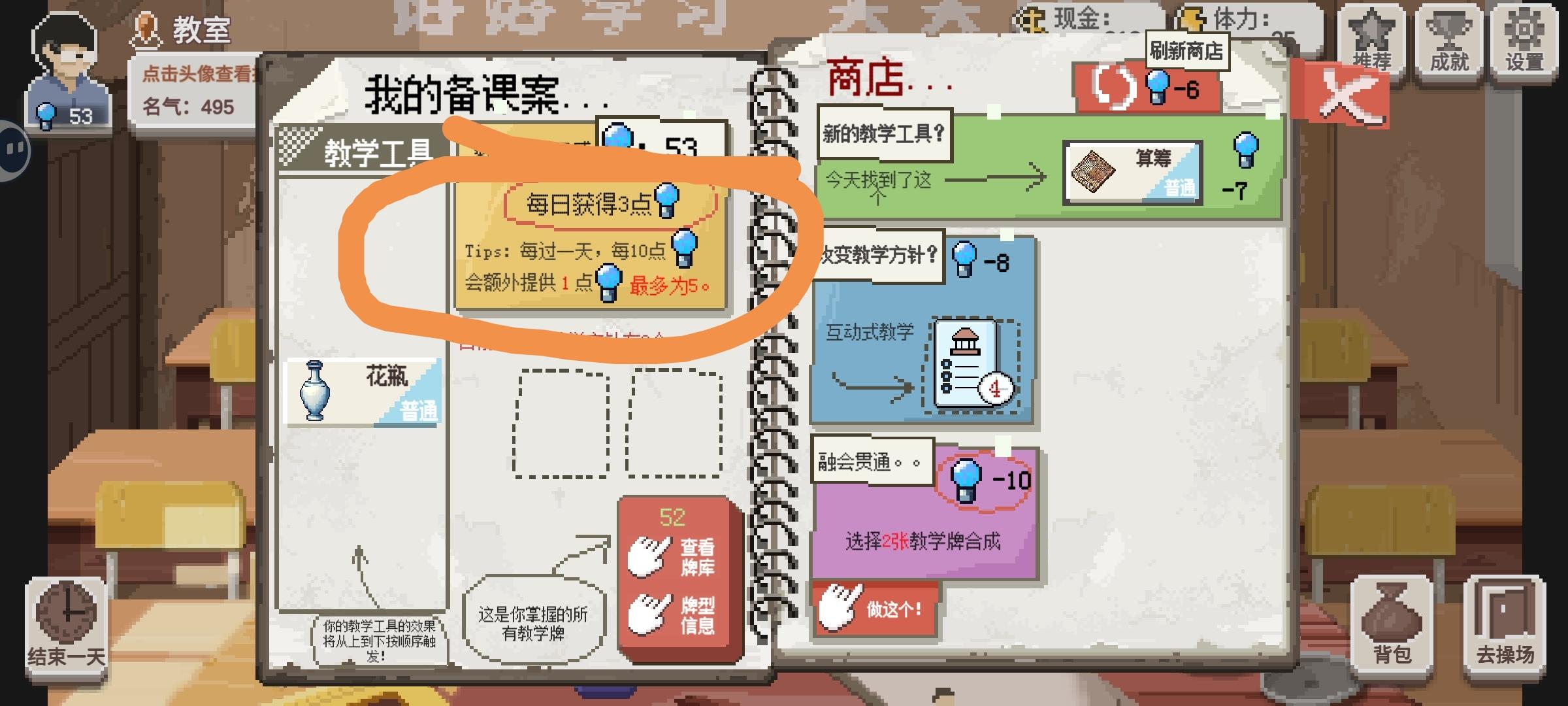 一直删牌,复制666就完事了,再拿个水晶骰子攒点灵感,后期动不动就一张牌加上千万分,第一批学生摸索着玩,人均三百多分,带第二批学生学会了配合教学用具,人均500+,第三批拿到了666直接全员满分了