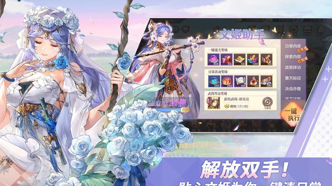 《三国志幻想大陆》是一款策略类游戏,玩家需要合理搭配武将阵容、获取资源、提升武将实力来推动游戏进程。 一. 武将选择与阵容搭配 初期武将选择,在游戏初期,可以选择一些容易获得的武将,如潘凤、邢道荣、蔡文姬等,他们在新区的性价比较高。 另外,女团阵容如孙尚香、甄姬等也是不错的过渡选择,能在前期提供良好的输出和续航。 二,核心武将推荐,随着游戏深入,可以逐渐培养如魂诸葛亮、魂关羽等核心武将。魂诸葛亮作