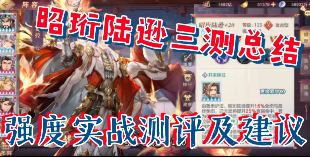 【三国志幻想大陆】昭珩陆逊三测总结,强度实战测评及建议